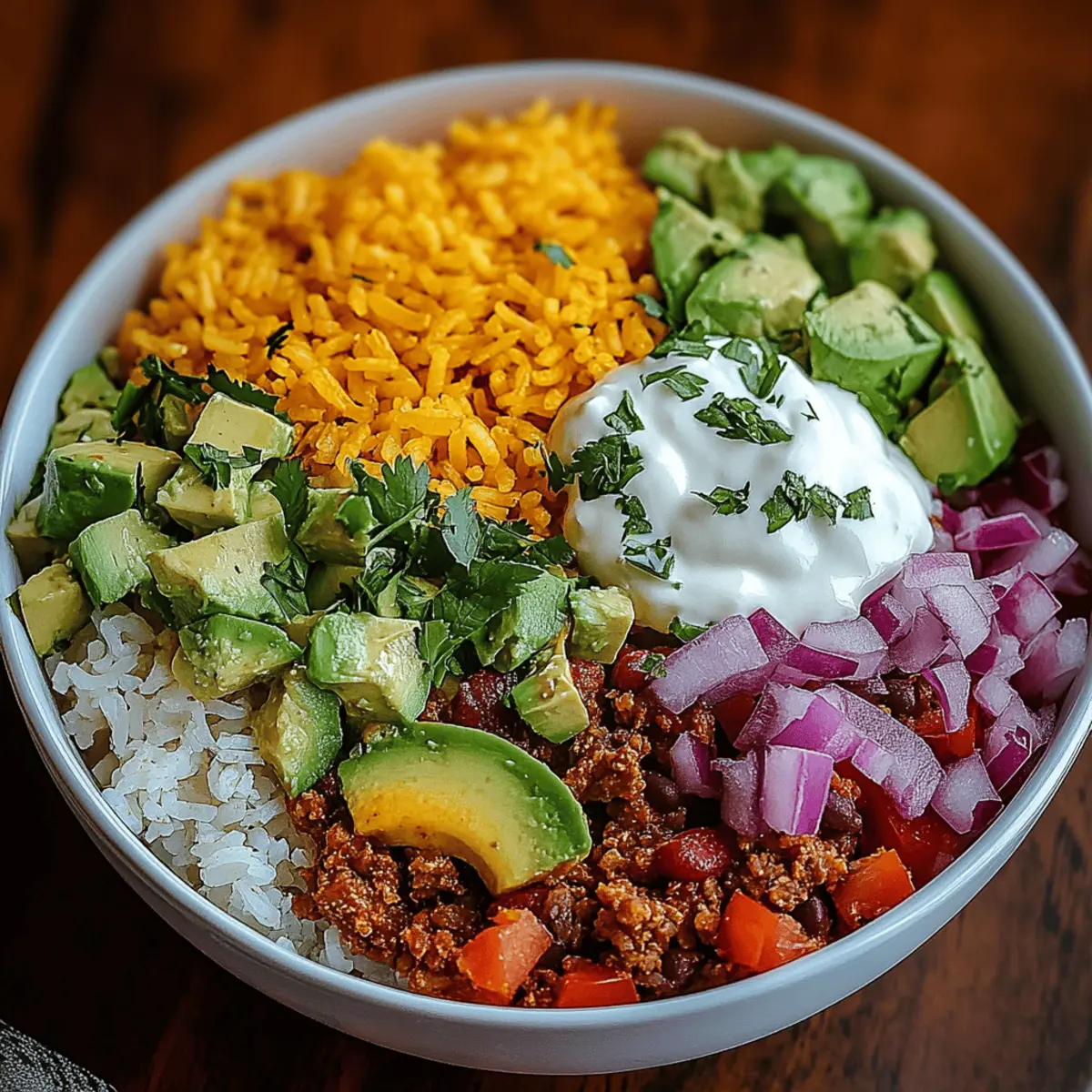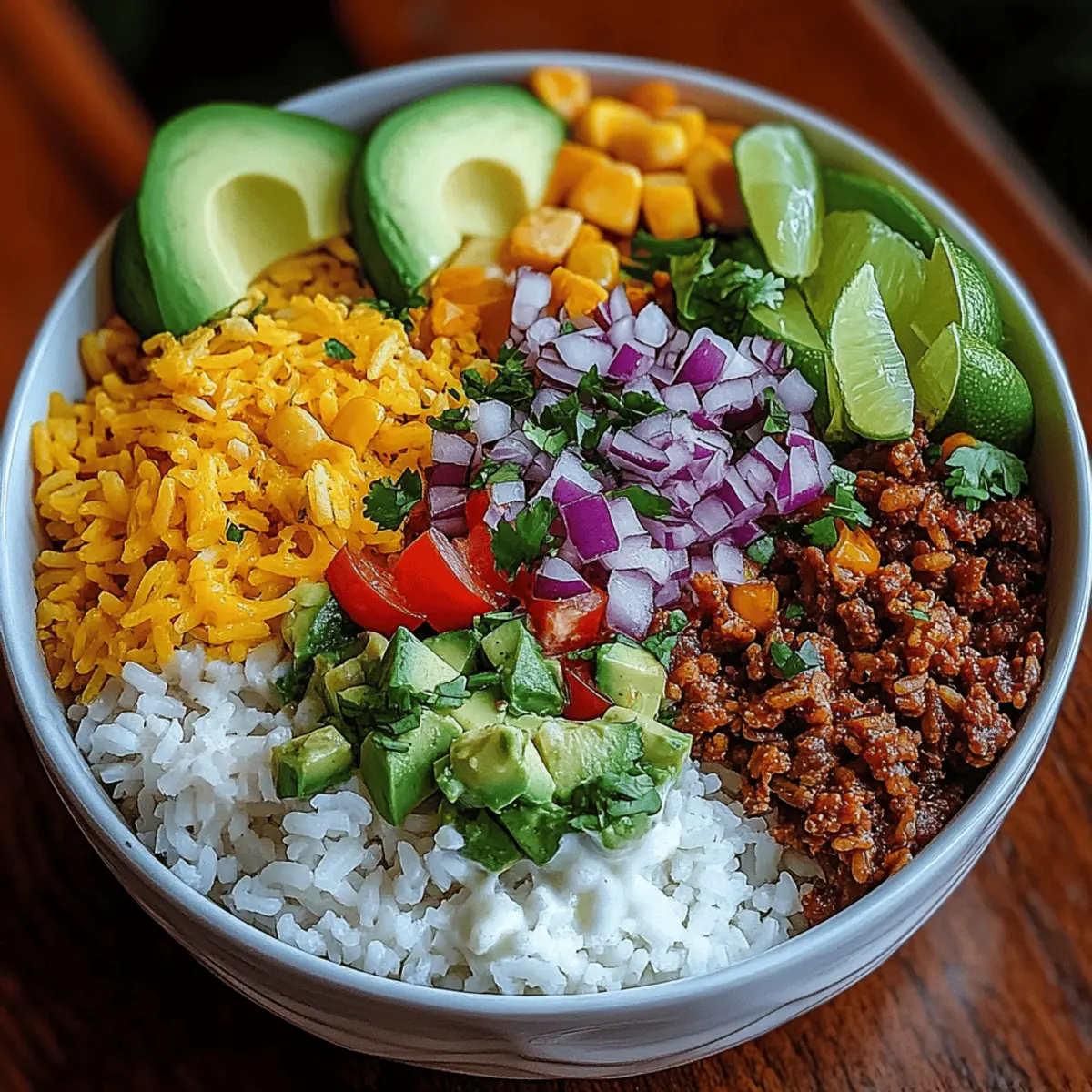 Who knew that a simple dish could evoke such warmth and nostalgia? My Taco Rice Bowl brings back the joyous family dinners and vibrant flavors of my childhood, while easily transforming into a modern, quick meal for today’s busy lifestyles. This satisfying bowl combines a savory blend of seasoned ground meat and fresh veggies, all atop fluffy rice—making it a perfect comfort food that's both crowd-pleasing and versatile. In just 35 minutes, you can enjoy a wholesome meal that’s as easy as it is delicious. Whether you're looking for a fun weeknight dinner idea or a nourishing lunch, this Taco Rice Bowl is here to save the day! What toppings will you choose to elevate your bowl?