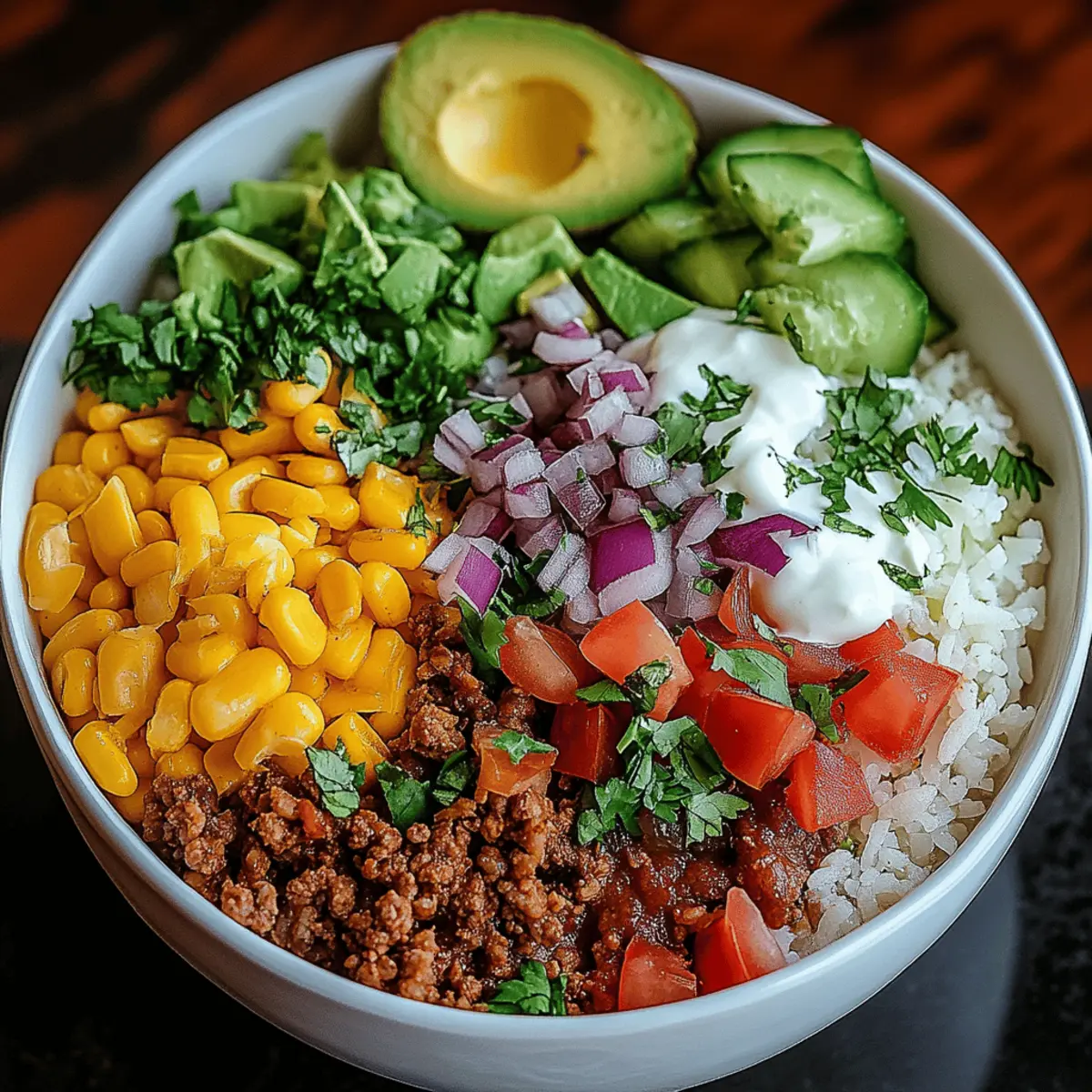 Choose Your Meat: Opt for ground beef for richness or turkey for a leaner option; either will deliver on flavor in your Taco Rice Bowl.