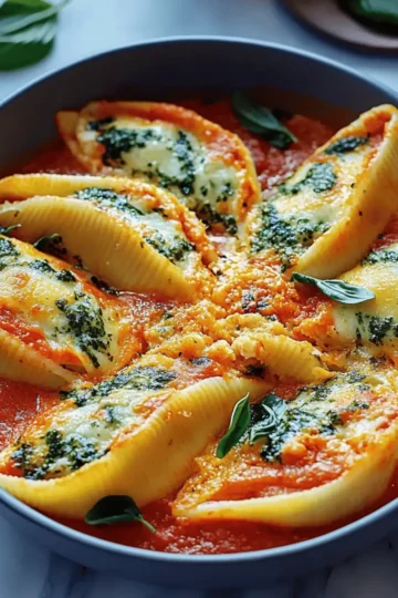 Indulgent Spinach Ricotta Stuffed Shells with Basil Sauce