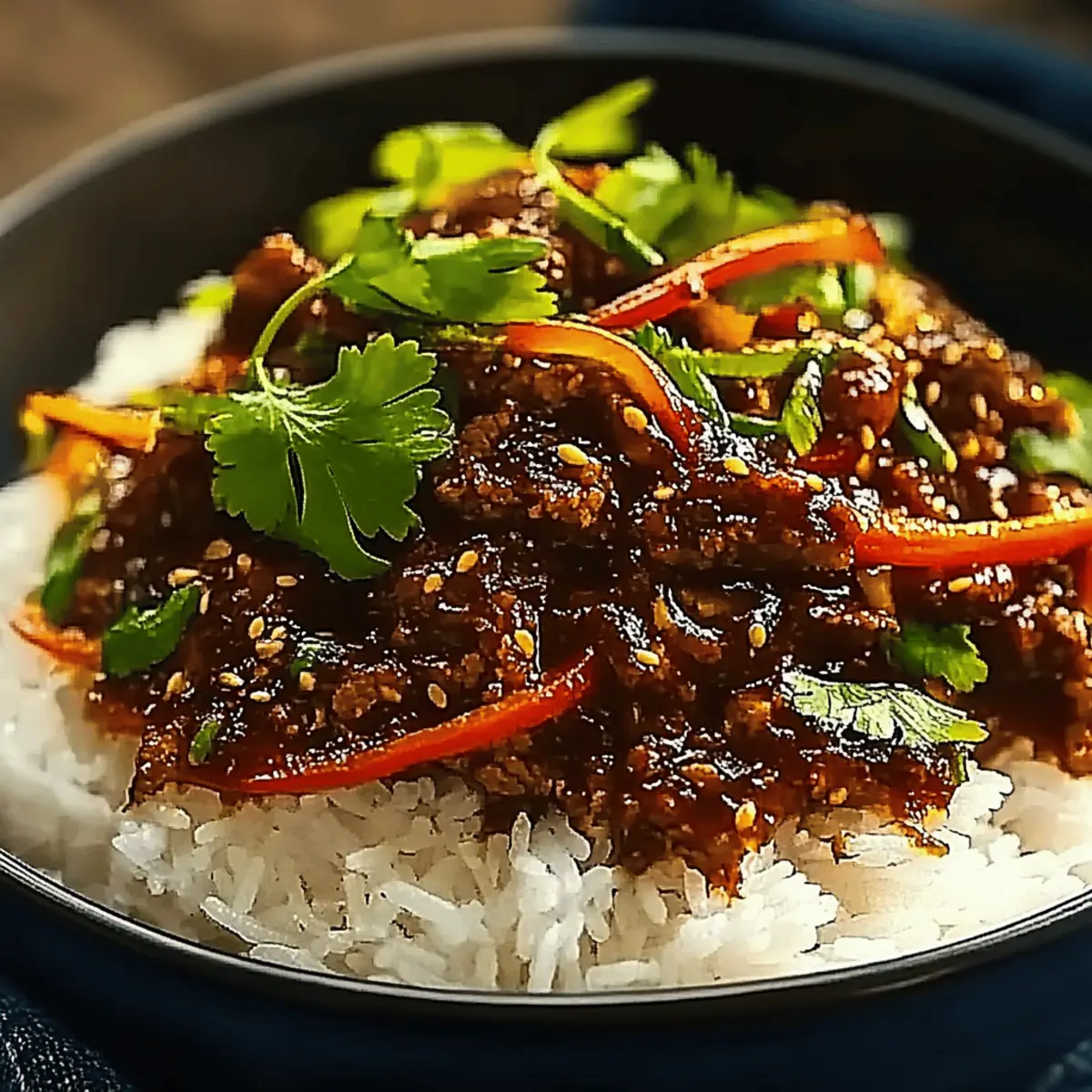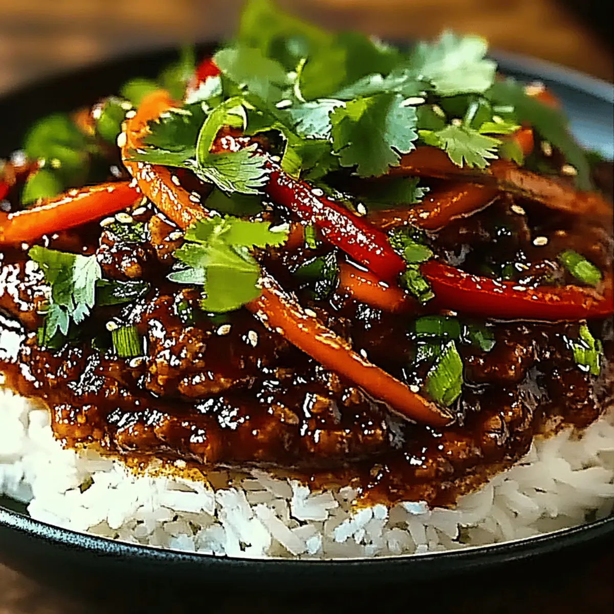 - If desired, garnish your Crispy Chilli Beef Rice with fresh cilantro and a sprinkle of sesame seeds for an added crunch.