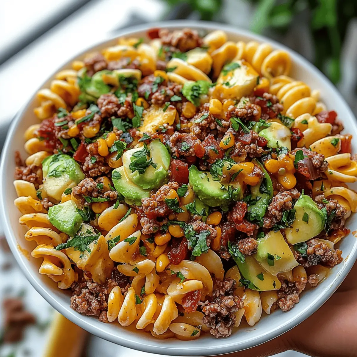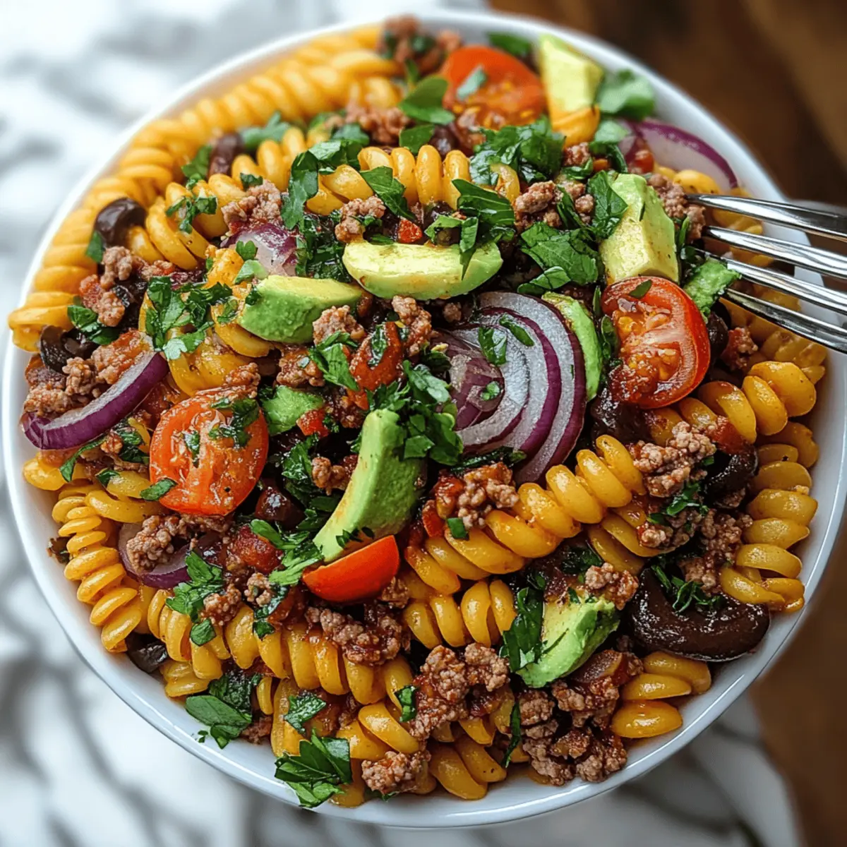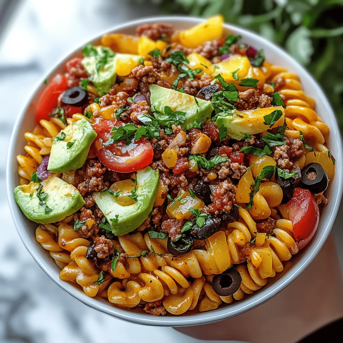Delight in creating your very own Seasoned Ground Beef Taco Pasta Salad Bowl! Each ingredient brings something special to the table, making this meal a delightful culinary experience.