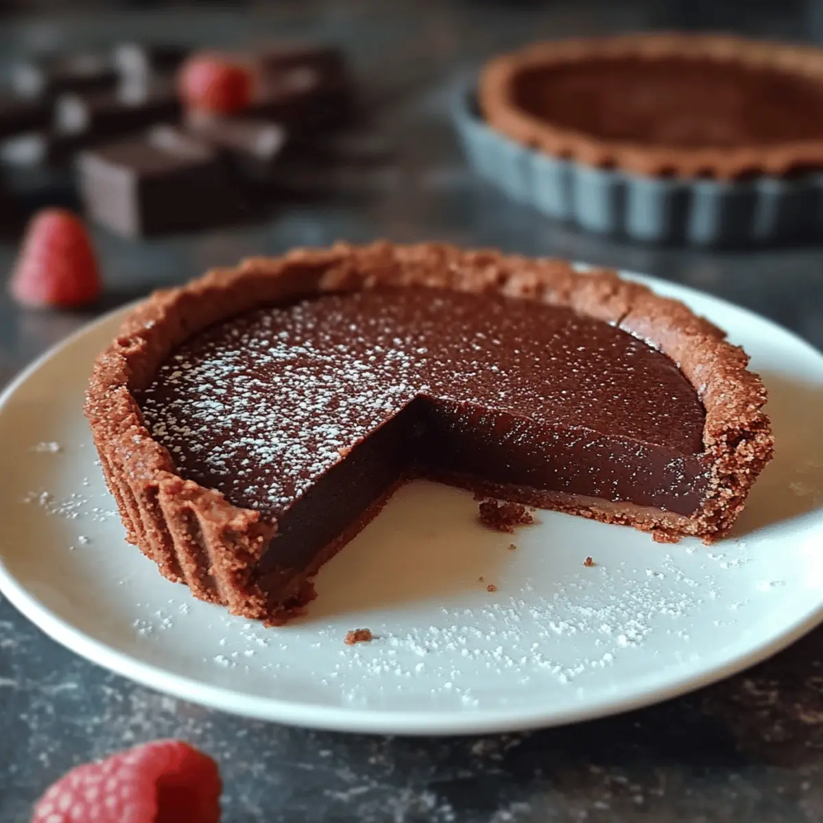 Fruit Surprise: Fold in fresh raspberries or orange zest into the chocolate filling for a burst of freshness that complements the rich chocolate. The fruit balances the tart’s richness with a delightful tartness, transforming each bite into a refreshing treat.
