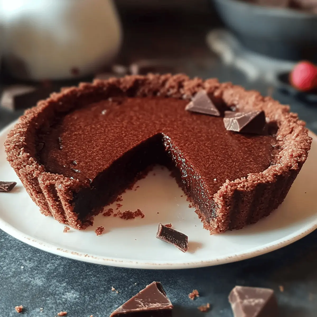 Decadent, Rich Flavor: Each bite of this tart offers a heavenly blend of dark chocolate and a buttery cocoa crust that melts in your mouth.