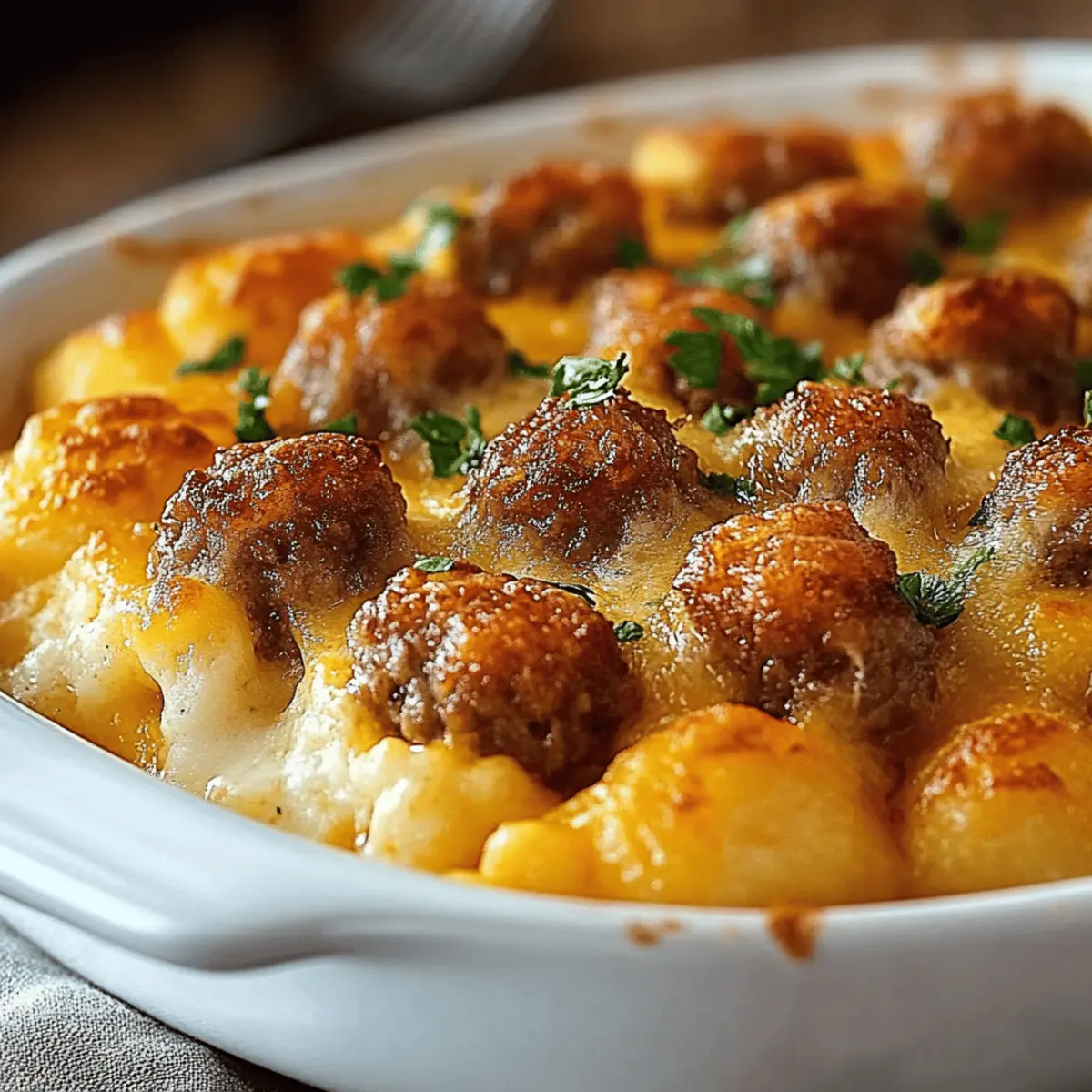 Loaded Casserole: Top with cooked bacon pieces or chopped sausage before adding tater tots, enhancing the savory goodness and adding layers of smoky flavor.