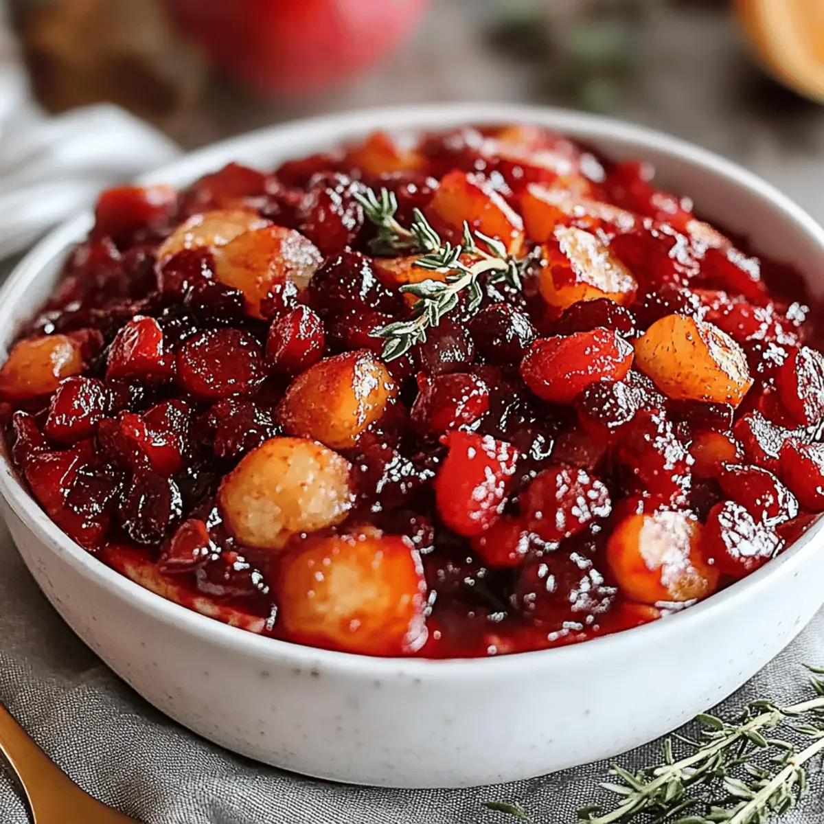 Absolutely! When selecting cranberries, look for firm, plump berries that are bright in color. Avoid any that have dark spots or are shriveled. For apples, choose ones that are crisp and fragrant—Honeycrisp or Fuji apples are perfect, but feel free to utilize your favorite variety. Make sure they’re free from bruises and blemishes, as these can affect the sauce's flavor.